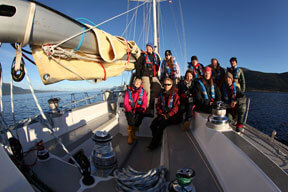 The crew L to R–Teresa (from TN), Chris (from MN), Tasha (from MN), Jeff (boat crew), Brit (from NYC), Robert (from TN), Anna (from Sweden), Dale (first mate from New Zealand), Clive (Skipper from England), Alfred (from NM)
