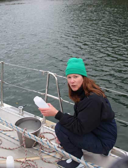 Anna taking water samples.